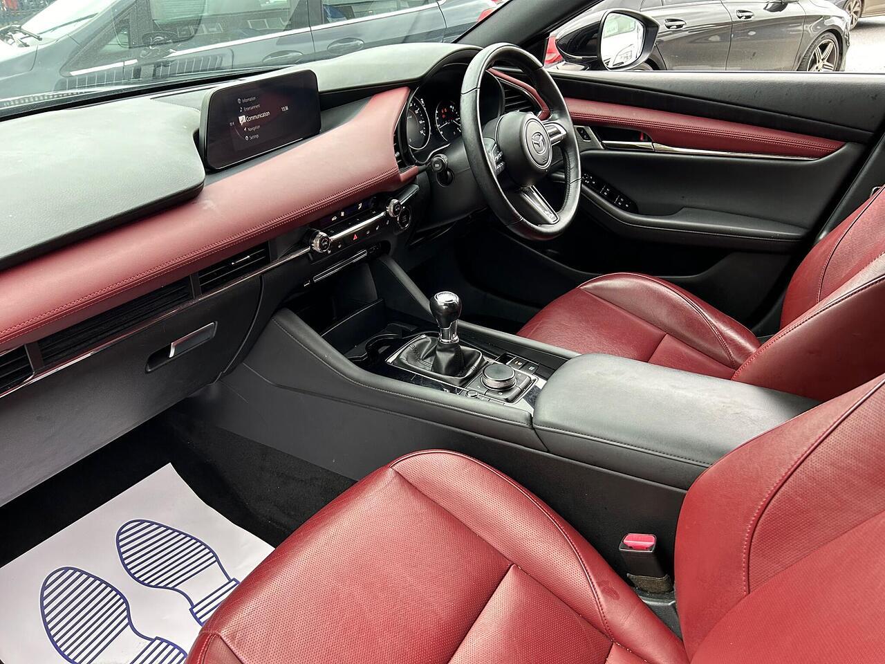 Boasting a full service history and an MOT valid until August 2026, this 2020 Mazda3 SKYACTIV-X GT Sport presents a well maintained example. This Euro 6 compliant 2.0L petrol model comes with a clear vehicle history check and benefits from a 6 month warranty for your peace of mind. Inside, you'll find luxurious Burgundy leather upholstery, complemented by a premium 12 speaker Bose Surround Sound System with AM-FM-DAB radio and single CD-MP3 playback. The GT Sport trim also includes convenient dusk-sensing headlights with automatic activation and daytime running lights, along with a rear parking camera to assist with manoeuvring.